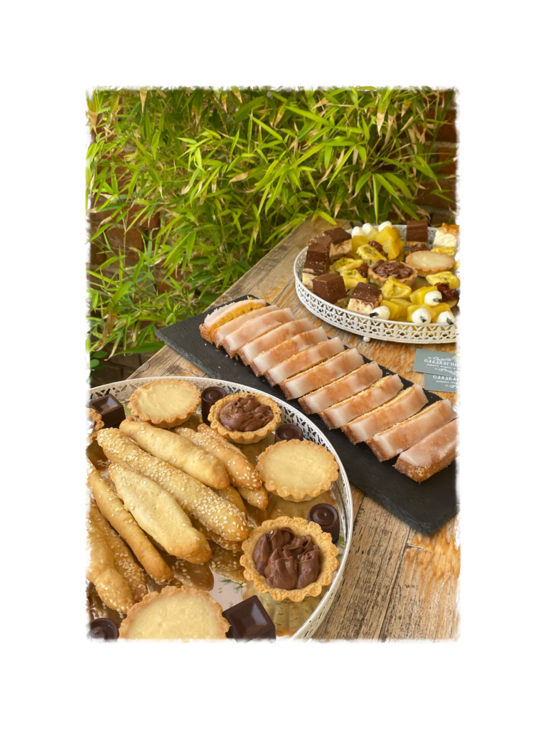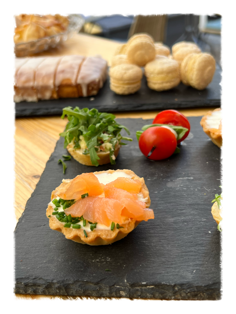 Хрупкава маслена кошничка с бадемово брашно в два варианта. Сладък – с яйчен крем с бял белгийски шоколад по авторка рецепта и солен с крема сирене, див луг и пушена сьомга